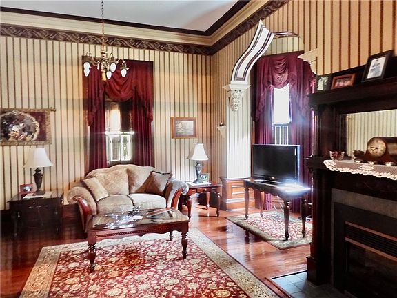 Unique late 1800’s Mansard Italianate Styled Victorian Home. Completely restored and immaculately presented.Beautiful original woodwork throughout. Each room in this amazing home is unique in its own style. Offering REAL ORIGINAL PLASTER Moldings including Extra Large Madalians, Sconses and Plaster Grape Moldings.Magnificent Open wraped staircase leading to the 3rd floor with original woodwork. Renovations include updated roof, furnace, plumbing,electric to name a few. All updated windows from basement,first & 2nd floors.Most renovations or replacements of woodwork,moldings,etc.have been closely reproduced like original. Fireplaces of todays convenience has been added in several rooms. ( gas & electric). Home includes a back access servants quarters with 2nd floor laundry. The Master Suite hosts an adjacent marble bathroom with seperate walk-in shower. The 3rd floor offers a glimps of the Original 1800’s wallpaper & original plaster. STATELY SITUATED on a Wounderfully LARGE LOT!