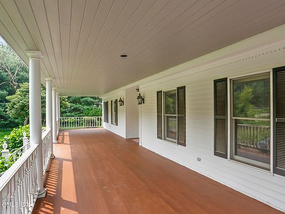 Spacious West Norwalk Center Hall Colonial reminiscent of a New England Inn with inviting front porch. RECENT: refinished hardwood flrs New Decorative Tiled Fireplace surrounds, Updated Master Bath (new tile/marble shower/floors) and renovated Full Bath w/ decorative floor tiles & tumbled marble tub. Circular flow has high ceilings in the vaulted family room, study & kitchen with skylights. The eat-in kitchen w/stainless steel Thermador double wide fridge, gas cooktop & hood vent, double ovens & excellent counter space & center island & new light fixtures. The adjoining family room with marble mosaic tiled fireplace opens to the side deck and spacious level rear lawn, A partially finished lower level has built-in bar. There's wonderful storage in full basement plus attic & 2car garage.