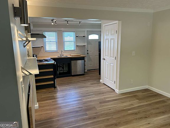 Modern 2 bedroom 1 bathroom apartment just a short distance to Downtown Griffin and in the Crescent Road elementary school district! This unit has been totally renovated, including new "oak" LVP floors throughout, tile shower walls, tile bathroom floors, subway tile kitchen backsplash/accent wall, and a cozy electric fireplace. Kitchen cabinetry is industrial and custom-built with butcher block countertops, open shelving above, and black/stainless appliances. The kitchen and living room are "open concept" making this small apartment more spacious and more functional. There is room for a small dining table in the kitchen and there is a collapsible counter top that can be used for dining or as a workspace. The laundry room is "in unit" and will accommodate a stackable washer and dryer. If you do not have stackable appliances or you simply do not want the hassle of moving your own, ask us about appliance rental opportunities. The unit is total electric, with a brand new high efficiency heat pump. Enjoy your backyard outdoor space with a gravel packed patio and partition walls for privacy, perfect for grilling. There are closets throughout the home and the attic has been substantially floored to create a large additional storage space. Come and take a look! Don't Miss out! Please read the required qualifications that we have listed, before paying for & submitting your application. Qualifications: 1) Credit score of 640+ , 2) NET household income of 2.4x the monthly rental amount , 3) Clean criminal/housing background , 4) good references from employer & current/previous landlord or management. To apply, please reach out for instructions. Please read the required qualifications that we have listed, before paying for & submitting your application. Qualifications: 1) Credit score of 640+ , 2) NET household income of 2.4x the monthly rental amount , 3) Clean criminal/housing background , 4) good references from employer & current/previous landlord or management. Copyright Georgia MLS. All rights reserved. Information is deemed reliable but not guaranteed.