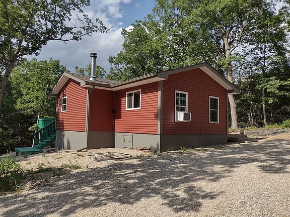 Very nice new custom-built home. Move in ready with attention to every detail. 900 square foot one bedroom home one bath. Perfect for full time living or vacation home at Lake of the Ozarks, just a few miles to Ha Ha Tonka State Park. 2 surveyed acres borders county road. Wildlife & trees and circle driveway. Open spacious living area pine covered walls & ceilings. Includes high end SS appliances. Laundryroom spacious enough for extra guest. Vinyl soffit aluminum fascia .04 siding exterior deluxe trim package. Ceiling R38 insulation/ Walls R13 , 3 hunter ceiling fans. Wood stove or use the electric heat and window ac unit. Pella windows throughout & sliding glass door in bedroom & 2 closets. Pergo laminate flooring. 445 sq ft of deck with GFI outlets. Private septic & shared well. Insulated crawl space has vapor barrier & built-in winterizing plumbing system. Property has a shared driveway with the adjoining 2.88 acres that seller will sell for an additional $35,000 with electric and shared well.