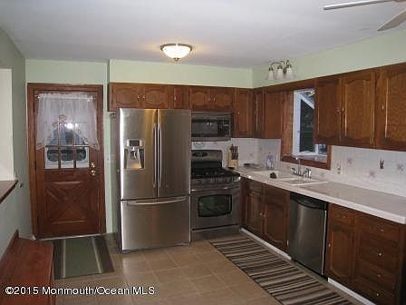 Ready for spring & summer! There's lots of house here on a quiet street in Shark River Hills. 4 comfortable BRs (2 up, 2 down), eat in kitchen with NEWER SS appliances, hardwood floors downstairs, 2 full baths (1 up, 1 down), 2nd floor has NEWER windows & w/w carpeting with a walk in closet in the master br. Great home for entertaining, 2 tier shaded deck off of the kitchen. The full, partially finished basement has a walk out to a beautiful, large yard. Oversized shed for storage, bikes, lawn mower and more and a workshop in the basement too. NEW roof installed in 2012 (50-year shingles), Central A/C & forced hot air heat, NEWER washer & dryer. Low taxes & move-in ready.EZ access to the GSP, Rte. 18, 195, 35 & 34. Minutes to Belmar & Spring Lake beaches and SRH & Belmar marinas.