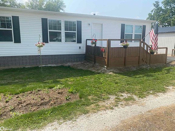 One owner manufactured home built in 2019 with nice deck, 14' x 30' insulated building with 8' x 7' roll up door and 36" walk in door. Also has 12' x 28' storage building with 8' x 7" and 36" walk in door. Property has a wood deck to both doors with one a having a ramp. Located just a few blocks from the business district and post office.
