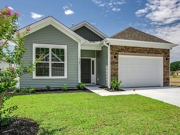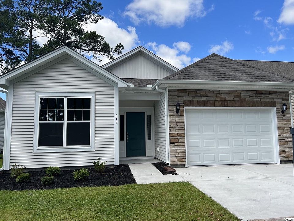 Photos are for representation only of another Callaway A. No carpet in this home. Luxury vinyl plank (LVP) in every room. The kitchen is complete with single bowl undermount stainless sink and stainless faucet with a pull out spray and soap dispenser. Glacier Gray cabinets, staggered and with crown, granite counter tops, kitchen backsplash tile, stainless appliances, gas range, brushed nickel hardware, pantry and plenty of recessed lighting. The primary suite located on the rear of the home includes ceiling fan, double bowl raised vanity with quartz counter tops and white under mount sinks, 5' tile shower with glass enclosure and shampoo shelves, large beautifully framed mirror, comfort height toilet, linen closet and an ample walk-in closet. The two guest rooms are off the foyer and share a bath which is complete with it's own linen closet. The laundry room is right off the primary suite. Other features of this home include a covered rear porch and grilling pad with gas line for your grill, coat closet, pull down stair for your attic access, tankless hot water heater, irrigation in the fully sodded yard. The low HOA fees include front and side yard maintenance, trash and recycle removal, access to all amenities which include: pool with cabana, clubhouse with fitness room , fireplace, library and large kitchen, fire pits, pickle ball, bocce ball, horse shoes, putting green, fishing ponds and sidewalks through out the community. Five miles to the beach, one mile from the inter coastal water, and minutes to several golf courses. Close to shopping, medical facilities and all the grand strand has to offer. This home will be completed in spring 2022