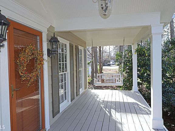 Charming remodeled home!Wide front porch w/ swing .Living room w/gas-log fireplace, & oversized dining room.To-the-studs kitchen remodel w/ white shaker cabinets, stainless, oversized gas range, granite, subway tile, and large island. Wonderful breakfast area opens to vaulted great rm w/ stacked stone fireplace & custom shelving. Plank flooring on main. Huge laundry can also be utilized as a walk-in pantry. 3 bdrms up w/ upgraded baths. Large flat private backyard goes well beyond fence. Swim/tennis/playground nhood in top Pope Highschool.