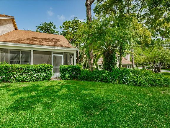 Prime three bedroom, two and 1/2 bath end unit townhouse with carport (carport has storage in attic). Beautiful landscaping outside every window. Terrific floor plan with master suite downstairs featuring a separate tub and shower in master bath. Living/dining area features a vaulted ceiling. The adjoining screened porch has more storage and park-like views. Laundry & 1/2 bath off eat-in kitchen. Don't let this great opportunity pass you by; Gleneagles is tranquil, friendly community near Innisbrook golf resort. Sits right across from the pool.