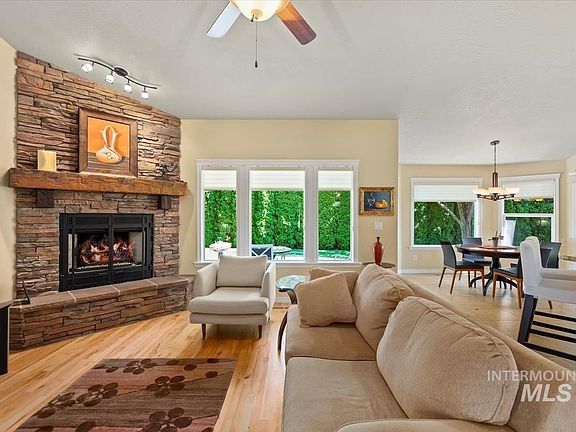 Discover this meticulously maintained single-level home in a prime location. Featuring a floor to wall stone fireplace, Bosch dishwasher, newer HVAC, newer water heater, and a new roof and gutters replaced in 2021. Enjoy a private backyard with ample shade, a neighborhood park adjacent to the property, and a 3-car garage. The split floor plan offers 3 bedrooms plus an office. Take an afternoon walk to Gerber Park or a leisurely drive to McCall's mountainside with this home's conveniently fast access to Hwy 55. Take in all that Boise has to offer with close proximity to downtown. Don't miss this opportunity for comfort, convenience, and community living. Schedule a viewing today!