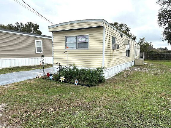 LOOKING FOR AN ALL-AGES COMMUNITY? THIS 2-BEDROOM, 2-BATHROOM HOME IS PERFECT FOR YOU!!! BRAND NEW LIVING ROOM WALL A/C UNIT! Home offers an open floor plan kitchen and living room with split bedrooms. No rear neighbors. Entire home has laminate flooring with no carpet. Inside laundry area with washer and dryer included. NEW ceramic tile flooring in main bathroom. Detached shed for extra storage space. Affordable lot rent. Call and make this your home today! **Home is sold unfurnished.** Greenbrier Village is an all-ages community located close to I-4 giving you easy access to both Tampa or Orlando. Within minutes of shopping, restaurants, movie theater, and other entertainment. Large dogs allowed with breed restrictions. Lot rent $550. KITCHEN: 11 x 11 * Laminate Flooring * Window Coverings * Refrigerator - Frigidaire * Range - Frigidaire * Dishwasher - Frigidaire * Eat In LIVING ROOM: 15 x 11 * Laminate Flooring * Window Coverings * NEW Wall Unit A/C (2022) LAUNDRY: * Washer: Amana * Dryer: GE * Laminate Flooring * Cabinets * Located Inside - Off: Hallway MAIN BATHROOM: 4 x 6 * Laminate Flooring * Single Sink * Tub/Shower Combo * Mirrored Medicine Cabinet MASTER BEDROOM: 15 x 11 * Laminate Flooring * Window Coverings * Standard Closet * Wall Unit A/C MASTER BATHROOM: 4 x 5 * Laminate Flooring * Single Sink * Tub/Shower Combo GUEST BEDROOM: 8 x 11 * Laminate Flooring * Window Coverings * Standard Closet * Window Unit A/C DETACHED SHED: * Concrete Flooring EXTERIOR: * Vinyl * Single Pane Windows * Carport: Single * Roof Type: Metal * AC: Window/Wall Units COMMUNITY: * Recreational Facilities The above information is not guaranteed. It is the buyer's responsibility to confirm all measurements, fees, rules and regulations associated with this particular park. This mobile home is sold "As Is" as described in the description above. There are no warranties or guarantees on this mobile home.