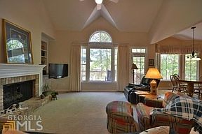 Lush landscape. Brick home with hard board siding. Large back deck. Located in newest and most private area of this community. Two story foyer, front living room/office with wall built-ins , moldings, and one and a half story living room with wall of windows and open kitchen, large breakfast area with access to extended back grilling deck. Master on main has soaring ceiling and luxury master bath. Bedrooms upstairs, generous in size and painted neutral. Full unfinished basement.