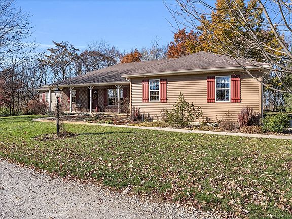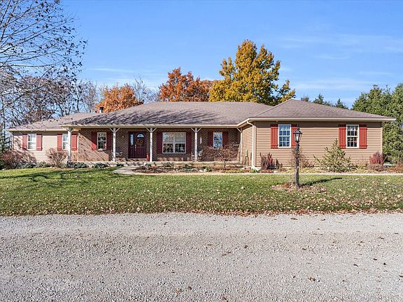 St Joseph's Hidden Paradise! Set on 15 acres, this ranch style home consists of a 10-acre tract and an adjoining 5-acre tract. It offers the best of both worlds - country living only 10 minutes away from the heart of Champaign-Urbana. Location. Location. Location. 2008 sqft., 3 bedrooms and an office that can serve as a 4th bedroom, 3.5 bathrooms (2.5 upstairs and 1 downstairs), laundry room, hardwood floors, and vaulted ceiling in great room that includes living room, dining area and kitchen. It has a 3-car garage, large front porch and back patio, geothermal heating, and thermal windows with countryside views out of every window. The kitchen boasts solid Oak cabinets, newer refrigerator and stove, large island, as part of the great room, and is a central focus when entertaining. Full basement with walk-out double doors has a large finished room- perfect for entertaining. It has a rustic wooden barn decor and hookup/flue for wood burning stove and a finished full bathroom. Five exterior doors for convenient access into the house; front porch, kitchen, laundry/mud room, garage, and double-walkout basement doors. About the Land: This property has an abundance of wild game. Trophy class mature whitetails call this property home with each year presenting opportunities to hunt bucks that are 5+ years old scoring from 130" to 170". There is a good sized population of turkeys in the area as well. There are large populations of Canadian geese that flock to the river and several species of ducks including blue wing teal, wood deck and mallard. Many other types of birds and small game species are present as well on the property including beaver, coyote, fox, raccoon, woodcock and pheasant. Fishing: The West side of the property contains a large run of the Salt Fork river. Great fishing opportunities are available right in the back yard. Wildlife: Besides the typical bird and mammal game species there is a wide variety of other wildlife on the property as well. Bald eagles fly over daily and great horned owls will sing you to sleep at night. There is endless entertainment for the wildlife enthusiast here. Plants: The home is surrounded by flowerbeds containing a variety of perennial flowers. The 15 acres contains a variety of trees (cedars, pines, oaks, chestnuts, maples, hickory, and many more) providing shade, privacy and beauty to the property. The massive 3 row windbreak that surrounds three sides of the property (plus the wooded acreage along the river) completely seclude the home and land from the outside world to create a hidden and quiet paradise! Additional features of the property: 30' x 40' Pole Barn, 26' X 30' Three Sided Shed, 12' x 24' Three Sided Shed and a Whole House Fan.