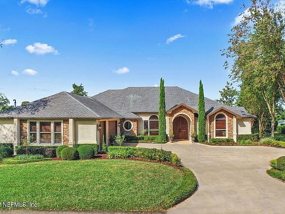 ONLY LISTING FOR JUST OVER A MONTH- DON'T MISS YOUR CHANCE to live in prestigious Old Barn w /in Sawgrass Country Club! This amazing 5 bedroom, 4.5 bath home w/ a 3 car garage, large driveway, AMAZING WATER & GOLF views won't be available for long! It's your one chance- take it! Enjoy the exterior beauty w/ custom stacked stone accents as you enter this bright, airy home w/ vaulted ceilings, open floorplan, split bedrooms, large primary bedroom & separate entrance to office/5th bedroom! The backyard has plenty of room for a pool if desired! Overlook hole #1 South fairway of Sawgrass Country Clubs pristine golf course from almost every room, not to mention from both the covered lanai as well as a screened lanai! This home has tons of storage, newer carpet, newer LVP flooring in the... baths, along w/ new lighting, fixtures, custom painted cabinets w/ new pulls. Newer 5-ton AC, 6-month-old tankless water heater, newer water softener, & more! Membership to Sawgrass Country Club is sold separately and currently has a wait list. Please inquire for more details.
