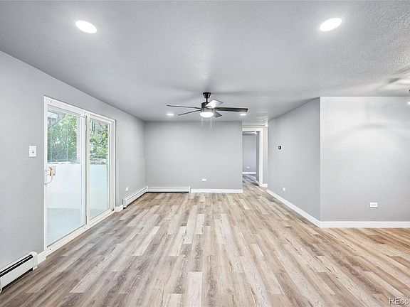 Beautifully updated, this residence showcases a completely renovated interior. Handsome new flooring extends throughout a thoughtfully designed layout featuring new drywall and a soothing, neutral color palette. Natural light streams in through new windows bathing the interior in abundant brightness. Sliding glass doors in the spacious living area open to a covered front patio, offering a seamless flow for indoor-outdoor entertaining. The stylishly renovated kitchen features all-white cabinetry, a subway tile backsplash and stainless steel appliances. A laundry closet with a stackable washer and dryer set is an added convenience. Two sizable bedrooms with large closets present the potential for one to be used as a private home office or guest accommodation. A full bathroom has been updated with modern tiles and fixtures. Residents of this community enjoy the convenience of a deeded parking space. A central location offers easy access to I-25, Downtown Denver and the Cherry Creek Trail.