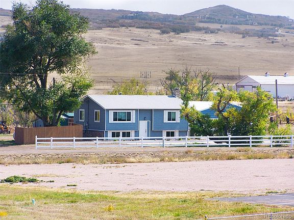 Just South of Castle Rock 3.7 miles and about 1/4 mile east of the Frontage road (Continuation of Wilcox) is a Charming little Bi-level that sits on an Amazing 5.2 Acres with East Plum Creek Running through it. In the past it has been used as Horse Property and has Plenty of space for them; (on the other side of the Creek there is about 2 acres of usable land). The Water Well is classified "Domestic" which allows for Horses. As for the Home, there is a High Tech Water Filtration and Purification System that was just put in. The Home is Cozy and has many new Updates (spent over $25,000 recently) and Features like: New Carpet, New Granite Countertops in the Bathroom and Kitchen, New Backsplash in the Kitchen, New Dishwasher, Microwave, Disposal, New Deep Sink and Faucet, New 40 Gallon Hot Water Tank, Newer Windows and New Cedar and White Vinyl Fencing. The Home comes with a Very Large Attached 5 Vehicle "Garage/Shop" that has oversized doors in the Front and Back. The property is equipped with 3 propane tanks (1750 gallon capacity, $6000 value) that are owned and not leased. The Lower Level has a lockable Cellar/Storage room, Laundry area, and Bedroom; plus there is an area that is stubbed in for an additional Bathroom, and an area that would make a nice Family Room. NO Covenants and NO HOA. This is a very Rare Property this Close in to Castle Rock with 5+ Acres and Plum Creek running through it.