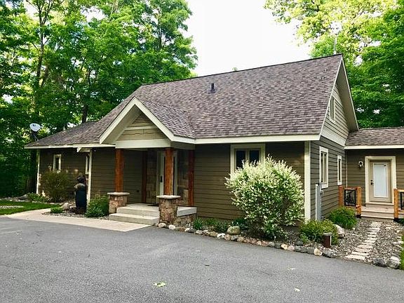 This incredible 3 bedroom, 3.5 bath home sits on 126' of south facing shoreline on 380 acre crystal clear Anvil Lake. WOW is what you will say when you look at the features: granite counters, ceramic floors, finished walkout basement, wood burning stove, sun porch, paved drive, two large garages, 1st floor master suite, 1st floor laundry, lower level family room, loft area with sleeping area and half bath, lower level workshop, smart board siding with Diamond Kote finish. The home is an envelope type home so not only is the home quite efficient, the air flow throughout the home is always fresh! The home also offers tons of storage plus there are two 28' x 32' garages! Even the wood for the cabinets came from the parcel!! The home was built in 1987 and was totally updated, plumbing, heating, addition in 2008. The original owners hate to say good bye. The home has been thoroughly loved and is in move-in condition. This is a Pre-Certified home too!!