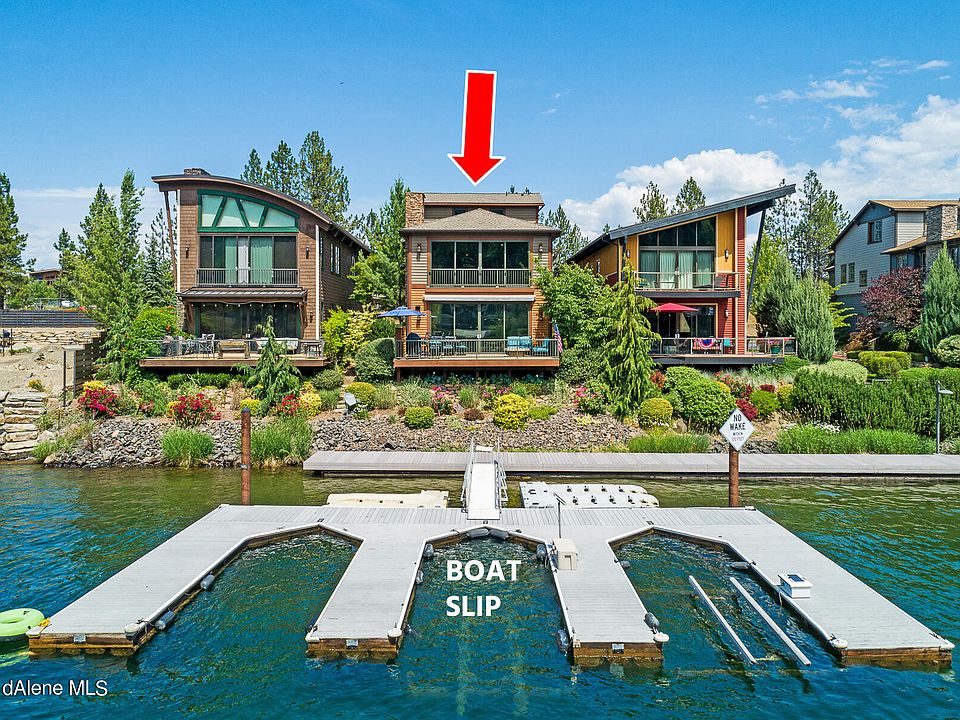COEUR D'ALENE WATERFRONT home that comes fully furnished and turn key on the highly coveted street of Bellerive in Riverstone! Custom home features an open floor plan with high end finishes through out, a spacious master suite, 3 other en-suite bedrooms and a living room with a wet bar that opens up to a large deck over looking the river! Comes with a boat slip and lift. You can't beat this location adjacent to the Centennial Trail, boardwalk, and just down the street from some of the area's best restaurants and shops!