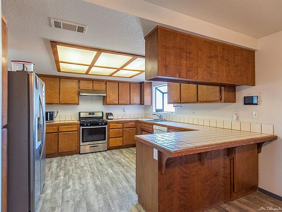 Enjoy this 3 bedroom home on the north side of California City, close to the Golf Course and with easy access to main roads for commuting. This home features both a formal living and family rooms, a large kitchen with plenty of storage and peninsula seating, a full guest bathroom and 3/4 en suite bathroom with step in shower. The back yard is expansive and has a covered patio. There is ally access and a privacy fence with double gates.
