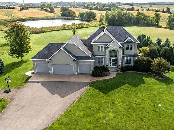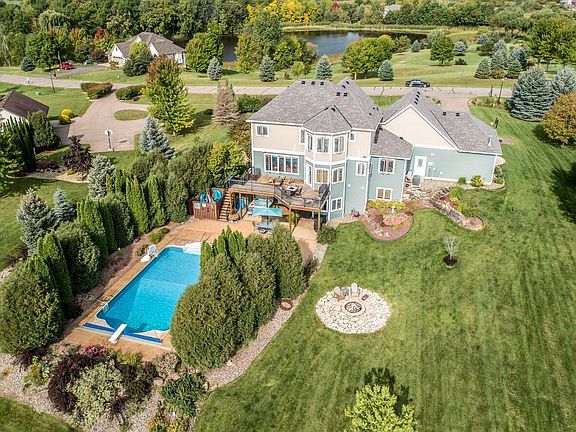 Stunning 2 story on a gorgeous 3.78 acre lot. This home features a grand foyer, updated kitchen w/granite counter tops and tiled backsplash, new appliances, hickory wood floors, gas fireplace, built ins, 4 car heated garage w/floor drain, fresh paint throughout and a main floor office overlooking the back yard. The master suite offers a vaulted ceiling, panoramic views, separate tub/shower and a walk in closet. The lower level is fully finished with a game area, in floor heat, full bar and walk out. Entertain guests on your spacious deck or enjoy the the hot tub and inground heated pool. The yard is professionally landscaped with outdoor entertaining areas, invisible fence, fire pits and lots of green space.
