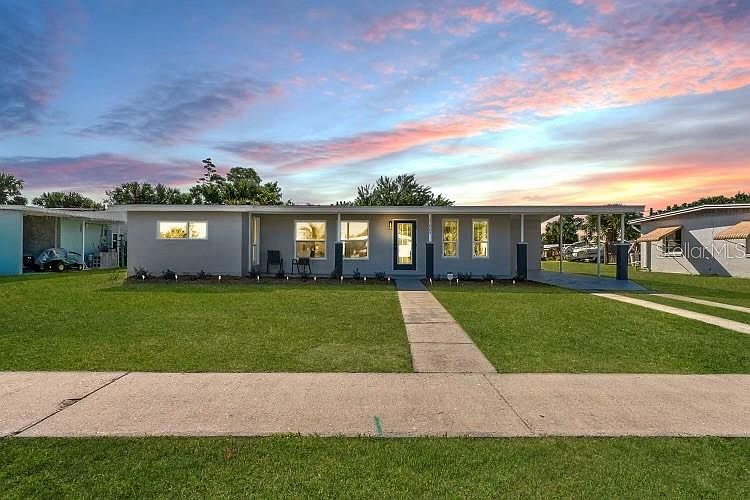 Welcome to this newly renovated home. This 3 bedroom, 1 bath house is beautiful inside and out. It has new kitchen cabinets and stainless steel appliances. The new laminate floors are water and scratch resistant. It also has new bathroom fixtures and was freshly painted inside and out. There is a nice front porch and large screened in lanai in the back. Additional features include a tankless hot water heater, a laundry room, a storage/shed area and a carport. The roof was replaced in November 2023. The AC was replaced in 2019 and was serviced November 2023. No need to worry about power lines because they are buried. This house is not in a flood zone, so flood insurance is not required.