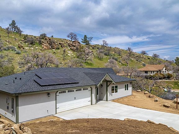 Custom Mountain Country Beauty!This jaw-dropping custom-built mountain lodge home has been meticulously designed and crafted in the sought after area of West Golden Hills! With 2,355 sqft, this 4-bedroom, 2-bathroom home sits on approx. 1.15 acres with numerous live oak trees and complete privacy with the mountain as your backyard! Once entering the home, you will immediately be captivated by the massive picture windows that offer postcard-perfect views and an abundance of natural sunlight throughout the main living area of the home. The great room has a luxurious rock fireplace and vaulted ceilings for open concept living. The kitchen is breath-taking with Knotty Alder cabinets, leather granite, and KitchenAid stainless steel appliances including a 36-inch stove with custom knotty alder hood. The dining room has an oversized slider that opens up to your secluded backyard. The primary suite has its own private access to the backyard, a jetted soaker tub surrounded by rock and a separate shower with 2 shower heads, including a rainfall showerhead. The natural rock boulders that surround the property are just exquisite and make this home feel complete. This home sits on two properties with the property next to it being part of the sale which totals 1.15 acres and has solar! Interior finishes brought to you by Mountain Country Designs.