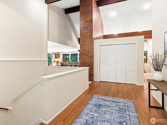 $10,000 CREDIT FROM PREFERRED LENDER! Tucked away on a quiet dead-end street, this home makes a statement from the moment you arrive! Featuring a grand entry w/ vaulted ceilings, exposed wood beams & wall-to-wall windows for an abundance of natural light. A brand new wraparound Trex deck is perfect for seamless indoor/outdoor entertaining & wired for a hot tub. A dramatic two-story brick fireplace transcends from the living room to the lower-level primary bedroom. Updates include fresh exterior paint, new carpet, new front Trex porch, deck railing & front fence. Spacious chef’s kitchen, cozy eating nook, air conditioning. This home blends charm w/ modern upgrades. Northshore SD! Just minutes from Canyon Park Shopping & Downtown Bothell!