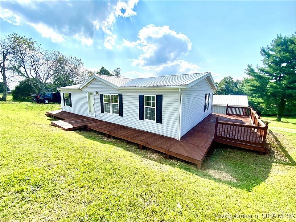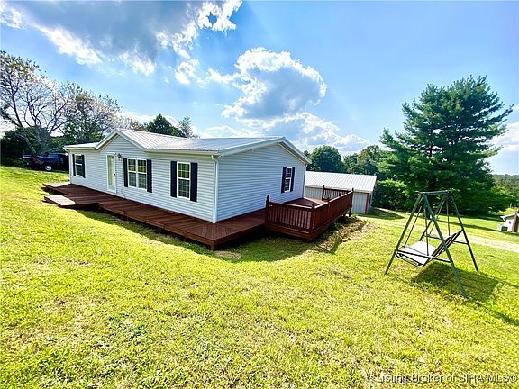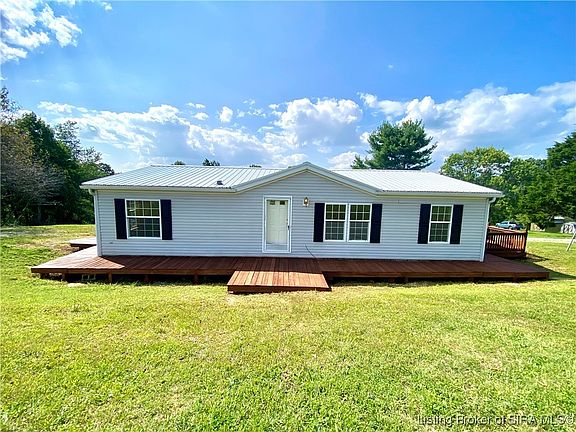 Welcome home to this conveniently located home in the country. This home has quick access to Highway 60 to Louisville or Salem. Large three bedroom two bath manufactured home on nearly 2 acres with large pole barn. Home has recently been rehabbed, including new paint throughout, new flooring throughout and all appliances, including washer and dryer remain. Large living room for larger furniture. The eat-in kitchen has tons of cabinets and counter space and room for a large table. Utility room features shelving, washer and dryer and room for extra pantry shelving. Lots of wide-open space here for atvs, four wheelers or just fresh air away from the city! Enjoy your wrap around deck on the front and right of home overlooking nearly two acres, large pole barn with electric and plenty of parking. Great, highly sought after Borden schools just 5 minutes or less away. Call today to see this great home. Listing agent is owner.