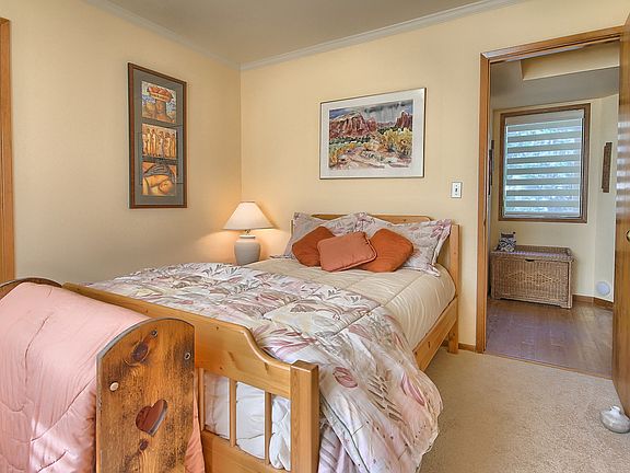 This peaceful property offers 2 B/R and 1.5 BA in a private setting on three lots (023-204-058 is included in sale). The main living area boasts a favorable open floor-plan, open beam ceiling, and stone fireplace. There is a large west facing deck that is perfect for enjoying the lovely outdoor space. The lots have been transformed into a very private, tree-lined garden, complete with vine arbor.