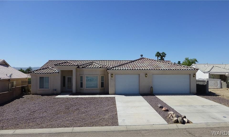 A Wonderful Home for Full Time Enjoyment or a Fun Weekend Getaway! Split Floor Plan design with an Open Kitchen, Solid Counter Tops, Breakfast Bar, Pantry, Large Master Suite with it's own Fireplace, Dual Sinks, Garden Tub, and a Fully Tiled Walk in Shower. Plenty of Parking out front, a Three Car Boat Deep Garage with its own Bathroom, and a Back Patio with Wrought Iron Fencing to enjoy the Beautiful Mountain Views. Close to The River, Boat Launches, Beaches, Casinos, Shopping and More. Call for a Showing Today!