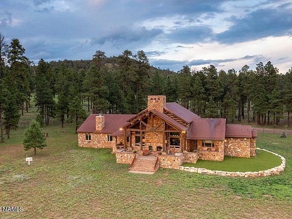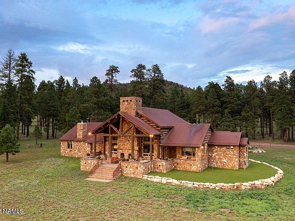 MAJESTIC MOUNTAIN LODGE! This Magnificent Nearly 5,000 Sq Ft Home sits on over 36 Heavily Treed Acres all the while being Surrounded by National Forest. From the Lightning Struck Up-Right Logs Straight Out of the Grand Canyon to the Onyx Slabs & Stone, nothing has been left to the Imagination. Not only can you enjoy the Peaceful Serenity of Country Living but if Horses and Cattle are your thing, this home also comes equipped with a 4 Stall Barn plus Tack & Feed Rooms, Bunkhouse, Holding Pens and your very own Private Roping Area. Great Room Concept, 2 Living Areas, Spacious Loft, Separate Laundry, Bonus Room, Indoor and Outdoor Fireplaces & A Beautiful Patio Area out back to Enjoy the Wildlife. Without a Doubt one of the most Spectacular Available. Please see Features List Attached.