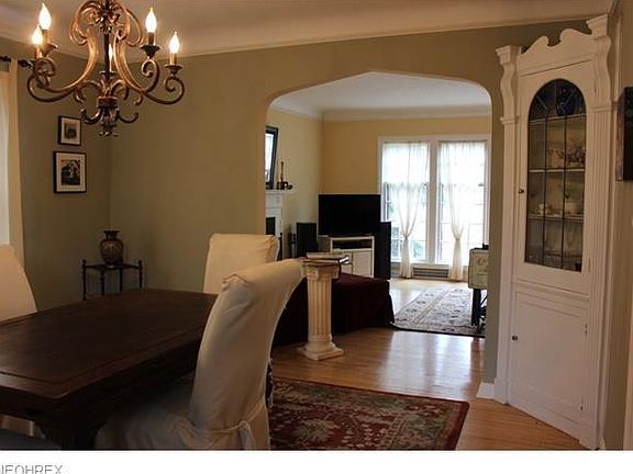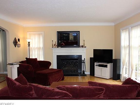 Beautiful brick and stone colonial with incredible curb appeal! Landscaped beds with mature trees/shrubs and lighting. Spacious living room with coved ceiling, fireplace, hardwood floors. Coved ceiling and hardwood floors continue into the dining room through a classic arch entry. Updated eat in kitchen with plenty of cabinet and counter space. Rear entrance through the mudroom off the kitchen. Fantastic screened in porch overlooks a private landscaped yard. Sharp neutral decor! Fabulous finished lower level rec room with fireplace, wine cellar and bar! Laundry area includes LARGE storage area. 3 bedrooms on 2nd including a master bedroom with dual closets and built in shelving. Enjoy summer breezes off the second floor roof deck. Third floor suite with a separate bedroom, cedar closet and full bath! Oversized garage with epoxy floor! Near hospitals, Universities, shopping, dining and Cultural district of University Circle. Impeccable condition! A MUST SEE!