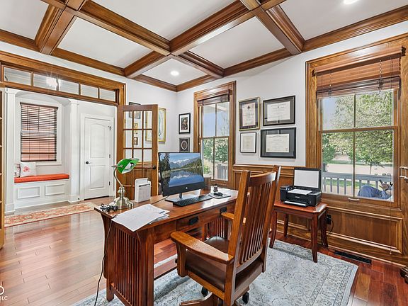 Nestled in one of Carmel's most picturesque and sought-after communities, this stunning 4-bedroom, 3.5-bath Century Italianate custom home offers timeless elegance and modern comfort. Step inside to appreciate the quality craftsmanship and attention to detail including crown & wall molding, wrought iron stair accents, timeless wainscoting, custom cabinetry/closets and gleaming hardwood floor throughout the main and second level. The main floor features a private office/library with built-in bookshelves and a spacious, well-appointed kitchen complete with granite countertops, stainless steel appliances, and a generous walk-in pantry. The kitchen flows seamlessly into the inviting great room, highlighted by built-in shelving and a cozy fireplace-ideal for both relaxing and entertaining. Upstairs, the master suite boasts tray ceiling, garden jetted tub, dual vanities, tile walk-in shower & walking closet. Each additional bedroom is generously sized, and each include walk-in closet. Highlights include a finished daylight basement with a 4th bedroom, full bath, and family room -ideal for home theater, recreation or flexible family living. Outdoor living is equally inviting with a private screened porch and a serene patio, ideal for morning coffee or evening gatherings. Just steps from your door, you'll find all that West Clay has to offer-restaurants, retail shops, parks, pools, fitness centers, and more-all within a vibrant, walkable community served by top-rated Carmel schools. This home is a true gem. Come experience it in person and take time to explore everything the Village has to offer!