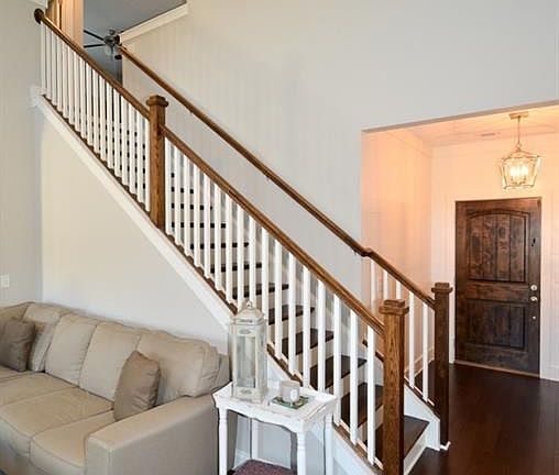 Like new! Shiplap entry in the foyer. Two story Great Room with accent windows. Gas fireplace with stacked stone surround. Hardwood floors in the Living Room, Kitchen & Dining Area. Kitchen has large center island, pantry, stainless steel appliances (gas range), subway tiled backsplash & granite countertops. Off the garage is a drop zone with built in cubbies & bench. Laundry with storage. Half bath is off of the laundry room. Master Bedroom is very spacious & features an en suite bath with tiled shower, double sink vanity & soaking tub. Private water closet in the master & walk in closet. Second floor has a second den/living room, hall bathroom & three bedrooms. Awesome covered back porch with vaulted ceiling overlooks fenced back yard. Irrigation system. Termite bonded. Stairway lighting. Gutters. Oversized garage. Upgraded lighting & plumbing features! Lots of attic storage. Neighborhood pool & state of the art clubhouse!