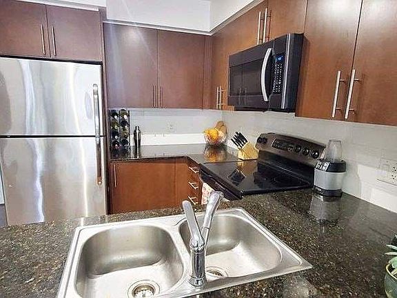 Spacious Principal Rooms With Floor-To-Ceiling Windows And A Generous Floor Plan. Modern, Open- Concept Kitchen With A Breakfast Bar, Granite Counters And Stainless Steel Appliances. Sliding Doors Reveal Primary Suite Featuring His & Hers Closets. A 3-Piece Semi-Ensuite. Separate Den Area With Large Picture Windows. Elegant Blend Of Laminate And Broadloom Flooring. Private Balcony With A South-Facing View