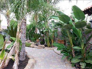 Spanish style home. Extensive paver and hardscaping work. Lush landscaping with beautiful palms succulents and cycads. Lighting and irrigation on automatic timing. Rock pool and spa. Bbq area. Seating area with fire table. Front courtyard with fireplace and also an inground wall fountain. Paver driveway and covered entry way.