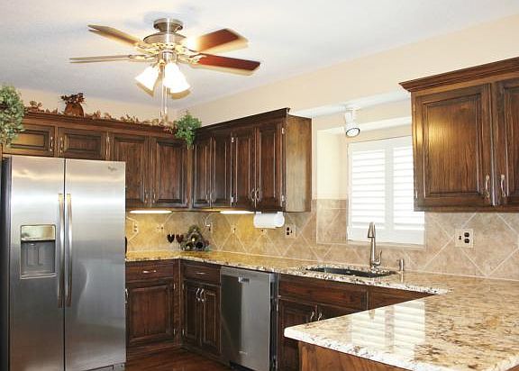 Fantastic maintenance provided villa! You will fall in love with this recently remodeled kitchen! Rich dark stained cabinets & hardwood floors, beautiful granite, stainless appliances. Light filled great room w/soaring ceilings and tiled fireplace. Main floor master has vaulted ceiling, plantation shutters, spa like private bath and a huge walk in closet! Convenient main floor laundry with built in cabinets. Spacious family room in lower level as well as 2 bedrooms and full bath. Tons of storage or future expansion