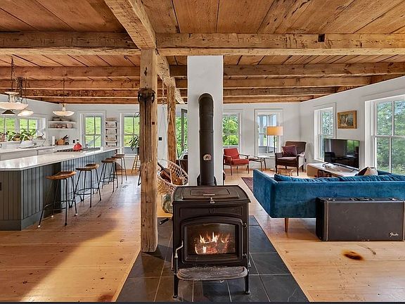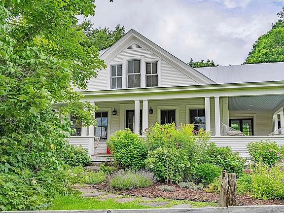 Relax in this lovingly restored Vermont farmhouse perched on 5 gorgeous acres, with an option to increase land to 10, 20, or up to 52 acres of pristine rolling hills and ski trails. This historic home offers a blend of rustic charm and modern comfort, featuring a fully renovated, inviting interior with a spacious, open-concept kitchen, living, and dining area, complete with cozy wood stoves and charming touches like Dutch doors, timberframe beams, and whimsical slides. Wood floors are gorgeous local pine with a welcoming slate entrance hall. The home boasts excellent insulation, energy efficiency, and versatile spaces: Main level includes an office or bedroom with 3/4 bath for accessible aging in place. Second floor features 4 sunny bedrooms, including a spacious primary suite with its own wood stove and entry stairs -- perfect for quiet privacy or AirBnB rental unit. The expansive wrap-around porch and outdoor spaces include bountiful flower and vegetable gardens, perfect for robust outdoor entertaining and enjoying Vermont’s natural beauty. Walk to Number 10 Pond (Mirror Lake) and accessible trails, and enjoy endless outdoor activities like canoeing, biking, running, and skiing. The land provides potential for future building sites with spectacular views. With its proximity to Montpelier, Burlington, and Stowe, this property combines peaceful country living with convenient access to town amenities, making it a truly exceptional Vermont retreat.