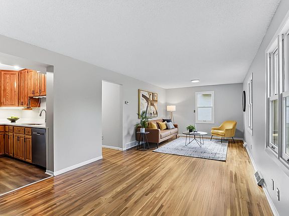 Step inside this charming and well-maintained Mounds View home that’s been thoughtfully updated throughout and is truly move-in ready. Fresh paint, new carpet, and LVP flooring fill the home with a clean, inviting feel, while large windows bring in plenty of natural light. The kitchen features new granite countertops, stainless steel appliances, a new sink and faucet, and a breakfast bar that makes the space both stylish and functional. Just off the back, you’ll love the sunroom with its vaulted ceiling, perfect for enjoying the views of your spacious and private backyard. The main floor also features a primary bedroom and a beautifully updated full bath with both a separate tub and shower. Upstairs, you’ll find three additional bedrooms and an updated 3/4 bath, giving everyone their own space. The unfinished basement provides endless storage potential, while the attached 2-stall garage includes a pull-through stall for backyard access. A brand-new roof (April 2025) adds peace of mind, and with a private patio, storage shed, and easy access to 35W, this home has everything you’ve been looking for.