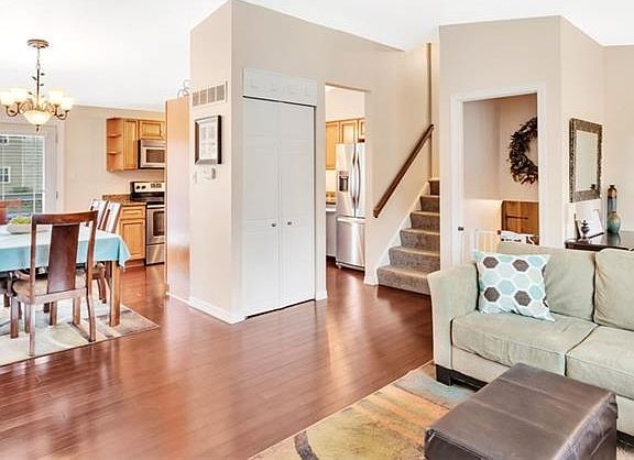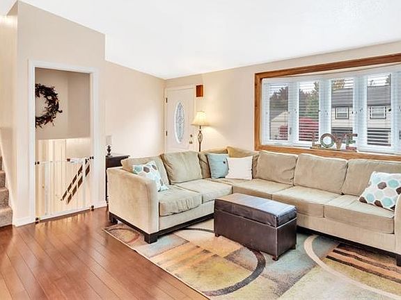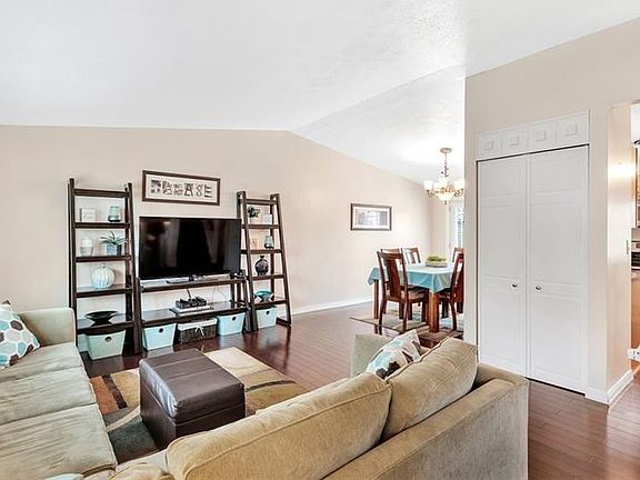 This multi-level home offers a flexible floor plan. The main level features hardwood floors, an open living room to the dining room, and an updated java glazed maple kitchen with newer stainless appliances. The upper level provides three bedrooms and an updated full bath with tile surround and quartz top vanity . The lower level has a game room, a full bath and a den/media room or additional bedroom. There is a level back yard and a large deck accessed from the dining room. This is a prime location with the community offering a pool, trails and various parks.