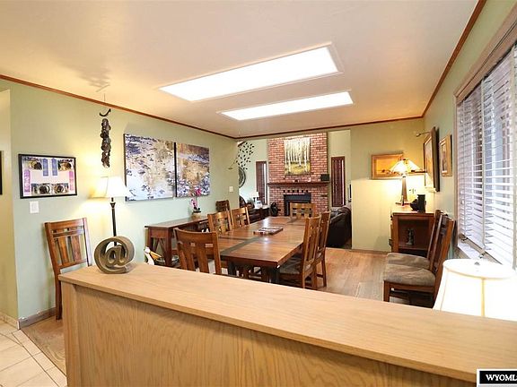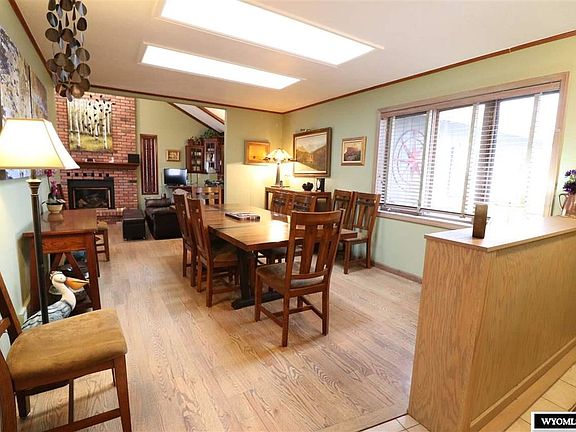 Wildlife abundant! North Platte river frontage from your own backyard! Updated cherry kitchen with in-cabinet lighting, Silestone countertops and bay window that overlooks river. Fireplace, skylights AND vaulted ceilings! Basement has been completely remodeled. Master bathroom has steam shower. Rare opportunity to live on the river!
