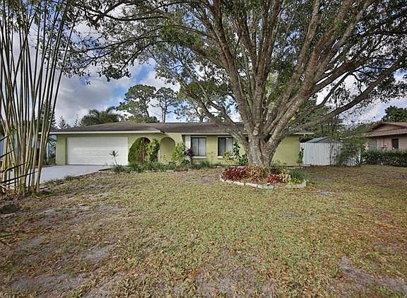 Surrounded by tropical foliage including stands of bamboo, this contemporary, ranch style home is situated on a serene residential street. The home offers two large, bright living spaces, one with a wood burning fireplace and a lake view. These large rooms are separated by an updated, modern kitchen with granite counter tops, stainless steel appliances and breakfast nook. The master suite is separate from the other bedrooms and boasts a large walk-in closet and space for a seating area. Both bathrooms have been updated with a modern flair. A screened-in patio leads to a wide pathway terminating at a lakeside pergola with scenic views of the adjacent manicured properties across the water. A laundry room with tub connects the house with the two car garage. The home is minutes from US41 and all its attractions.