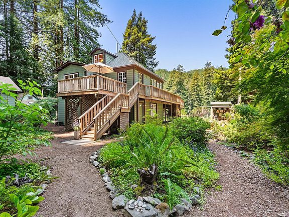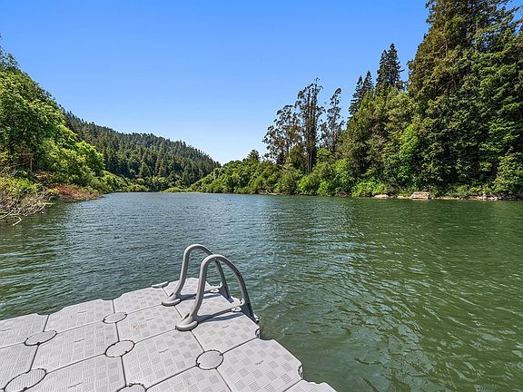 Nestled in the idyllic town of Villa Grande, this sun-drenched riverfront gem is surrounded by majestic redwoods. Enchanting residence is a true haven for nature lovers & river enthusiasts alike. Steeped in 1900s character, the home features vintage architectural details, warm wood paneling, period windows & modern skylights that fill the space with natural light throughout the year. The inviting living room, with serene river views, is centered around a cozy gas-burning stove, perfect for relaxing evenings. Designed for versatility, the home offers a flexible floor plan with 2 bedrooms (including an en-suite) thoughtfully separated by the main living area. The spacious lower level currently serves as a master suite & all purpose room with its own private entrance, but it could also accommodate guests, function as an art studio, or be transformed into a home office. Step outside to your private riverside oasis: expansive decks, a sunken redwood hot tub, native landscaping, fruit trees, & the tranquil sounds of birds & wildlife await. Direct river access is yours via your own seasonal floating dock. Adding to the property's appeal is a legal detached studio unit with loft, perfect for rental income, guest overflow or a creative retreat. Only blocks to neighborhood beach!