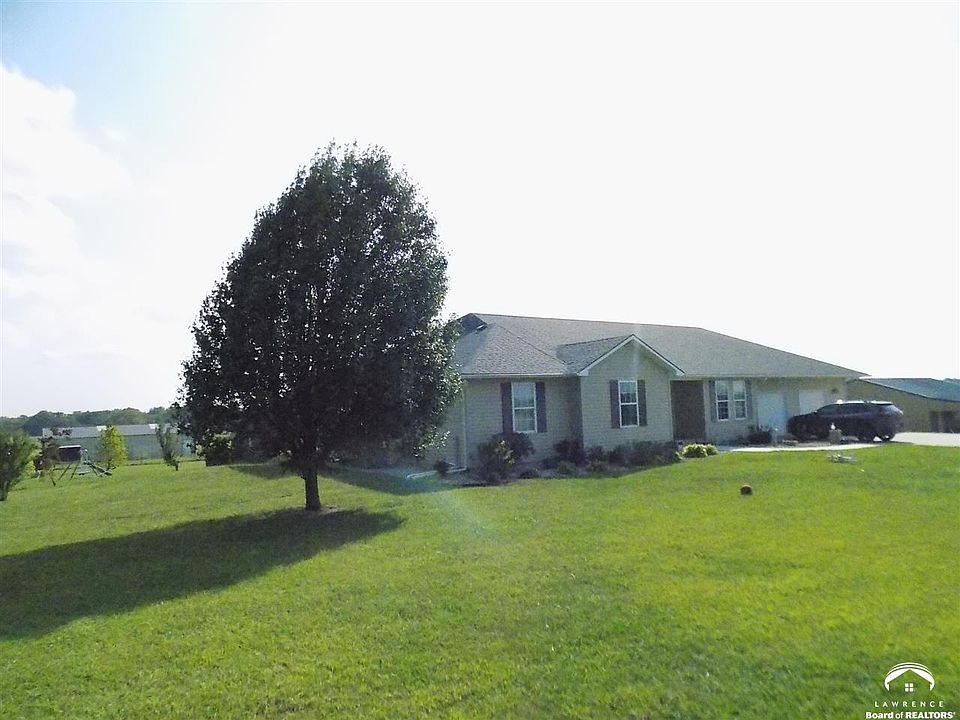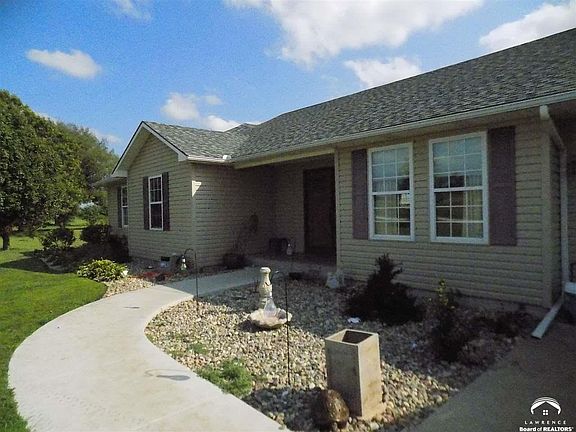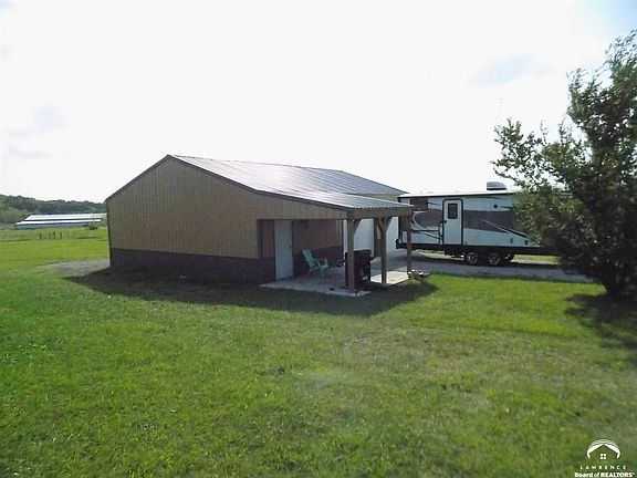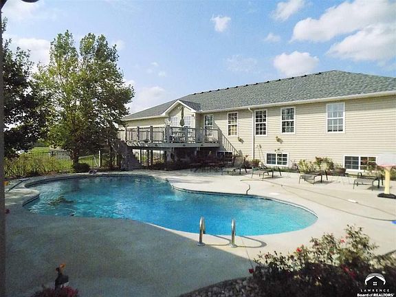 Great Location S Of I-70 & N of Eudora, approx 1 mile off 222 rd to home on approx 19 acres this home and land offers it all. Fully stocked pond for fishing, New Roof, In ground swimming pool with pool house. Heated, cooled, and Insulated shop for motorcycles or cars. Enjoy outdoor activities, livestock, fishing, swimming, hunting, timber and a creek to fish and explore. What a great house & land. Bright and open plan w/lots of vaulted ceilings and a view the land, pool, pond.