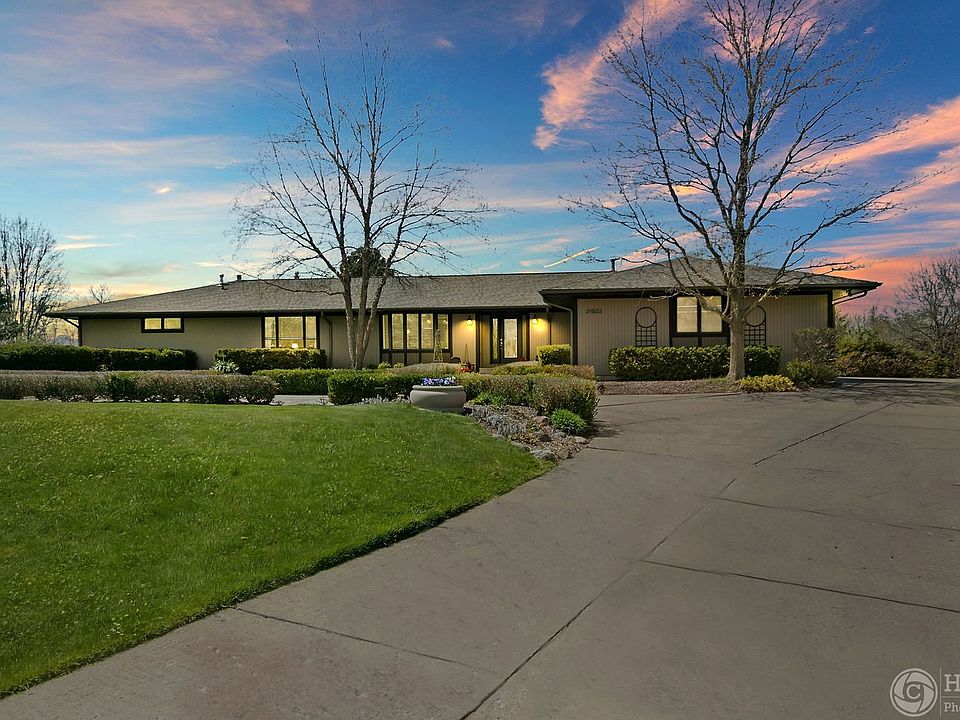 STUNNING CALIFORNIA RANCH with FULL WALKOUT LOWER LEVEL - Extraordinary hillside ranch is much larger than it looks; nearly 6000 sq feet of modern living space + oversized garage + expansive cedar decks = over 8000 sq feet of casual living. Tastefully updated in today's DESIGNER FINISHES and colors, this refined custom home is situated on a full acre in upscale Hamilton Estates of Deer Park. The GOURMET KITCHEN opens to great room and boasts BEAUTIFUL QUARTZ countertops, luxury appliances, hardwood cabinetry, subway tile, pantry, open shelving, and large breakfast bar. Multiple French doors lead to REFURBISHED 100' DECK and LARGE TREE-LINED BACKYARD for easy indoor-outdoor living and entertaining. GORGEOUS HARDWOOD FLOORS and CRISP DESIGNER TRIM throughout. The spa-like master ensuite features walk-in closets and SEPARATE DRESSING AREA with custom vanities, new quartz countertops, Lacava sinks, glass tile backsplash, and custom-designed porcelain floors. Dim the lights and relax in the deep soaker tub or the WALK-IN SHOWER, then wrap yourself in heated towels. The back office wing with driveway access is ideal for a HOME BUSINESS. The gracious foyer, elegant dining room, two more large bedrooms, updated baths, and convenient laundry complete the main floor. BUT WAIT...THERE'S MORE! The open staircase leads to the MASSIVE WALKOUT lower level, drenched in sunlight, with nearly 3000 sq ft of amazing living/entertaining space, fireplace, additional bedroom, hobby room, and dual French doors to lower deck. The full-size SECOND KITCHEN is an unexpected bonus, featuring a stone island/bar, STAINLESS appliances, and WHITE SHAKER CABINETRY. Secondary living arrangements possible. The 3.5-CAR GARAGE is climate-controlled and includes 25 linear ft of built-in storage and 220v power. The NEW ROOF (2016), extensive updates, triple-zoned HVAC, fluid floor plan, loads of storage, CUL-DE-SAC location, and AWARD-WINNING SCHOOLS make this immaculate executive property a WOW! And as if that wasn't enough, the convenient location is yet another plus - near tennis courts and neighborhood parks; hiking and bike trails in the nearby forest preserve; abundant shopping, restaurants, Barrington Metra station, and upscale Deer Park Town Center are only a few miles away. Watch the video; nothing else like it on the market. Schedule your private showing today!