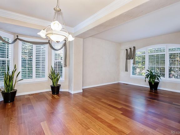 Are you looking for the open space that backing to Saddle Rock Golf Course will give you? Come see this gorgeous Troon Creek home that greets you with the rich look of Brazilian Wood floors. Natural light from the 2 story wall of windows floods the home. The private main floor master has a cozy fireplace and its own patio entrance. A smartly designed updated Kitchen and Family Room are at the heart of this wonderful Home. You will find the unique floorplan meets all of your family needs with space to spread out. Enjoy outdoor Colorado living entertaining on the patio with built-in gas grill or spend quiet time relaxing on the balcony. A huge full basement is waiting for your future plans. Located in the award winning Cherry Creek School District, there is a community Pool & Tennis and Larkspur Park connects to the Piney Creek Trail. This desirable neighborhood is close to shopping, DTC and has easy access to E-470. It's time to fall in love with your new home.