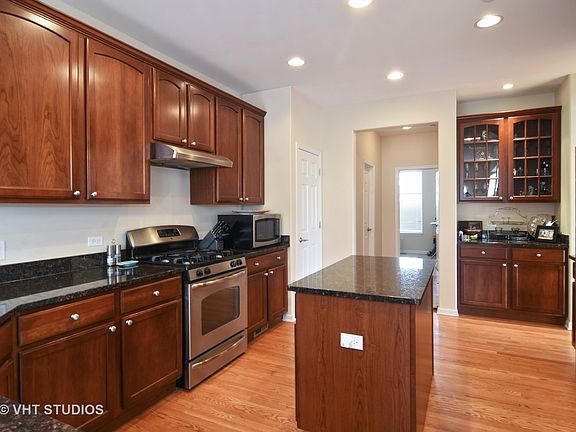 Luxurious end-unit with largest floor plan and move-in ready! Enjoy maintenance free living convenient to Deer Park shopping, restaurants, theater and bike/walking trails just seconds away! This gorgeous 3 bedroom, 2 full, 2 half bath, finished basement is easy living with open volume ceilings and upgrades galore. Beautiful hardwood floors throughout 1st fl, cherry cabinets, granite counters, stainless steel appliance, fireplace, 1st fl laundry, 2 car garage. Loads of sunlight flood into the 2 story windows located all around this end unit. Large master suite with 2 bowl vanity, soaking tub, separate shower, 2 walk in closets too! Hurry, this is the one you've been waiting for!