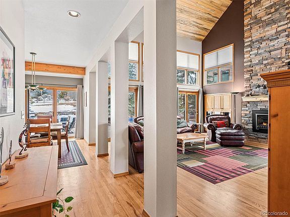 Welcome to 2193 Augusta, a rare opportunity in a uniquely wonderful community. This current and pristine home sits on over half an acre located in one of N. Evergreen's most desirable neighborhoods, Hiwan. This open floor plan lives enjoyably with high vaulted ceilings and oversized windows that almost seem to let the outside in as soaring pines and nature abound. This home presents with generous amenities to include a spacious great room warmed by a cozy fireplace and open to the adjoining spaces. The kitchen, dining and butler’s pantry come together in a flow perfect for hosting.  The upstairs hosts the primary bedroom with a luxurious 5-piece bath and walk in closet, along with three additional bedrooms and full bathroom. The downstairs walk out level offers even more room for guests and or family with another living room and cozy fireplace, wet bar, gym, storage and workshop. This home and location are a must see but, a virtual 3D tour is also available to consider. Mountain living has never felt more convenient.