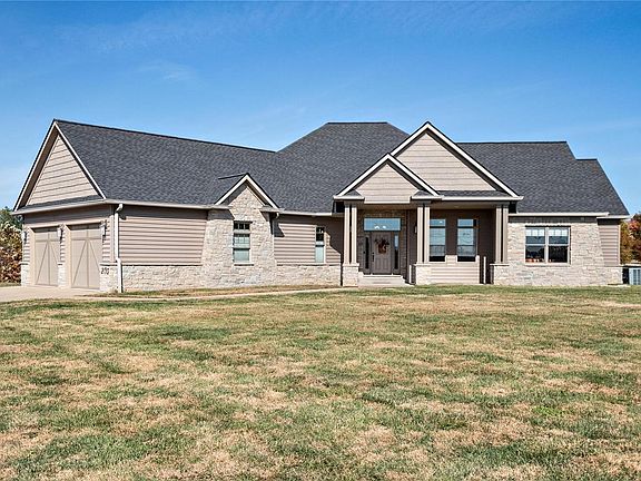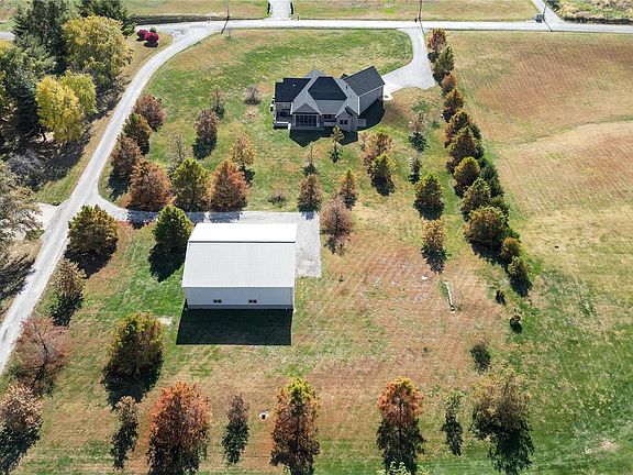 This custom-built ranch sits on 3 acres & offers the ultimate combination of luxury and functionality, complete with an amazing 54' x 48' airplane hangar. Step into the wide-open main level to enjoy gorgeous hand-scraped hardwood & a beautifully designed chef's kitchen that features a large center island, granite countertops, & breakfast area overlooking the huge hearth room. The main living area also has an office & a sitting room, perfect for unwinding or working in comfort. The primary suite boasts a bath complete with dual vanities, a soaking tub, walk-in shower, & a spacious walk-in closet. A second bedroom with en-suite bath, a third full bath, & a large laundry room complete the main level. Head downstairs to find a family room, a third bedroom, another full bath, and ample storage space. The hangar has 17' ceilings, a 45' x 15' Hydroswing door, RV door, concrete floors, & even a half bath. For aviation enthusiasts, a 2500' x 100' lighted air strip sits 500 feet away.