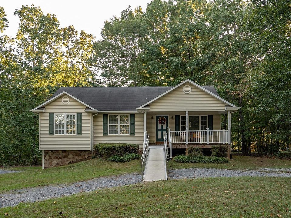 Very nice 3 bedroom/2 bath ranch home with open floor plan and large private 1.0 acre lot. Located just one minute from Stanton River High School, this well kept home has a large two car garage and unfinished basement for additional space if needed. The primary bedroom suite is very spacious with walk in closet and large open bathroom. Enjoy your morning coffee on the rocking chair front porch and cook out on the large back deck overlooking the private back yard in the evenings. Great location, private lot, and spacious main level living home in Bedford all for only 285K. Call for your private showing now.