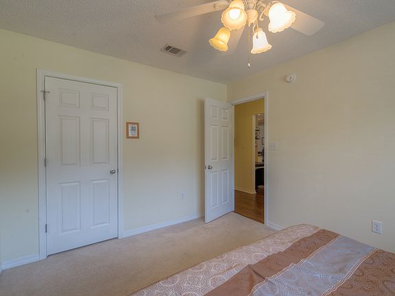 Check out this beautiful move in ready home in a wonderful neighborhood just 15-20 minutes from Duke Field and 35 minutes to Eglin AFB. This well maintained home welcomes you with lovely hand scraped hardwood floors that extend through all the common areas including the kitchen. You'll love the open floor plan with soaring high ceilings with a split layout allowing for master retreat privacy. The master suite is large and inviting with a large bathroom featuring double vanities and two walk-in closets. The kitchen is open to the living room with a large breakfast bar and center island. The large corner lot has an extended driveway pad for additional parking in front, and the large privacy fenced yard has a side entrance gate with plenty of room to pull in a boat or other recreational items