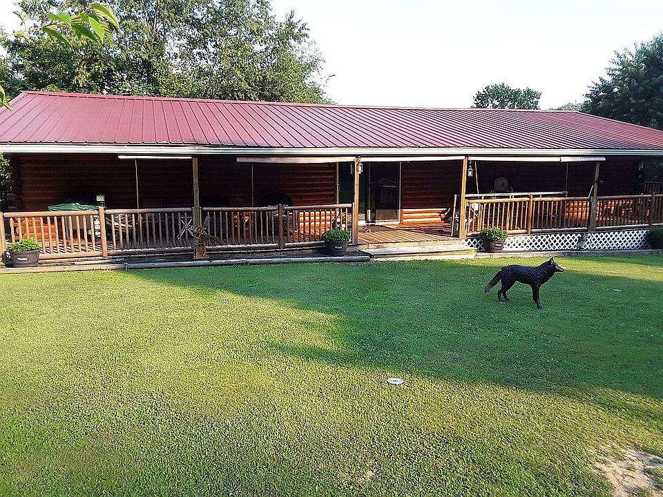 Beautiful log-sided (interior and exterior) ranch home set on a hill overlooking woodland area.