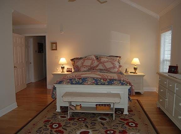 Fantastic Two Story Open Floor Plan! Master Bedroom & All Living Areas are on the First Floor! Soaring 18' Vaulted Ceilings in the Great Room, Open & Airey w/Many Updated Features including: Brick Wood Burning Fireplace, Crown Molding, Plantation Shutters & Hardwood Flooring. First Floor Master Suite w/15' Vaulted Ceilings, Hardwood Flooring, Crown Molding & Large Walk In Closet. Master Bath Includes: Tiled Walk In Shower, Tiled Jetted Tub, Tiled Flooring, Custom Cabinets & Fixtures, Marble Counters & Crown Molding. Easy, Open Kitchen w/Granite Countertops, Stainless Appliances, Tiled Backsplash, Hardwood Flooring, Custom Cabinets, Accent Lighting, Large Pantry, Built In Desk & Breakfast Nook! Beautiful 11x14 Formal Dining Room w/ Crown Molding, Hardwood Flooring & Plantation Shutters! Gorgeous Home in Great Shape w/Beautiful All Neutral Interior Colors! Enjoy the Tranquility of the Large, Fenced In Back Yard from the 20x28 Rear Deck! Prestwick is a Premier Guard Gated Communit