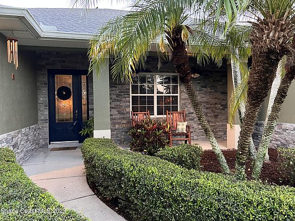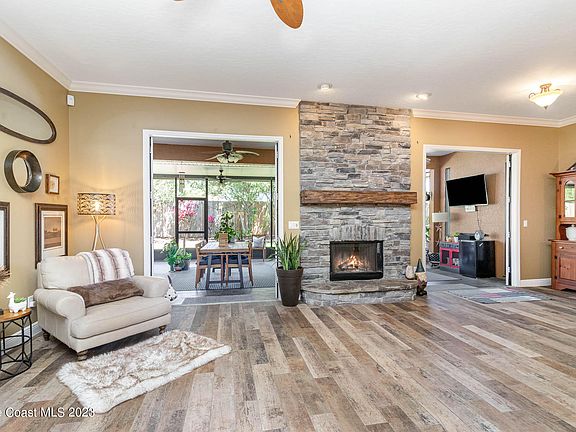 Located in the quiet, family-friendly gated neighborhood of Woodfield at Heritage Oaks, just minutes away from some of Brevard's top-rated schools, I-95 access, shopping, dining, and entertainment options. Fifteen minutes to the beaches! New roof in 2022 and new AC in 2021 - HVAC has a whole-house LED air purifier! Step inside and be greeted by the spacious living room, perfect for entertaining guests or relaxing with family. The open-concept floor plan flows seamlessly between the dining area, kitchen, and the outdoor living space with a six-person hot tub overlooking the backyard and a board-on-board fence that ensures privacy. The bonus room could be the 5th bedroom! This home has a two-car garage, indoor laundry room, and hurricane shutters for added peace of mind.